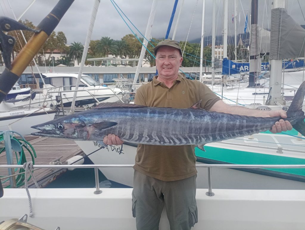 Na foto está o Sr. Colin Currie, a quem gostaríamos de agradecer por se ter juntado ao grupo — um senhor muito simpático, divertido e foi um prazer tê-lo a bordo. Foi a sua primeira vez em pesca grossa aqui na Madeira… e que excelente começo! 🎣🌊